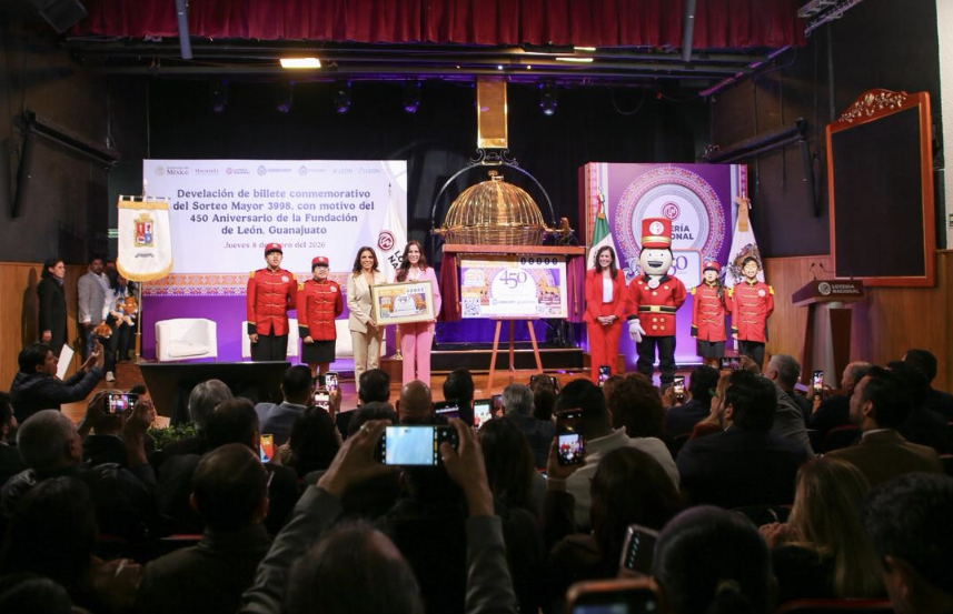 ¡Un gran orgullo! Con la presencia de Autoridades del Gobierno de la Gente que encabeza Libia Dennise García Muñoz Ledo y de León, la alcaldesa Ale Gutiérrez se realizó en conjunto con la Lotería Nacional el billete del Sorteo Mayor No. 3998, para conmemorar los 450 años de la fundación de la ciudad de León.