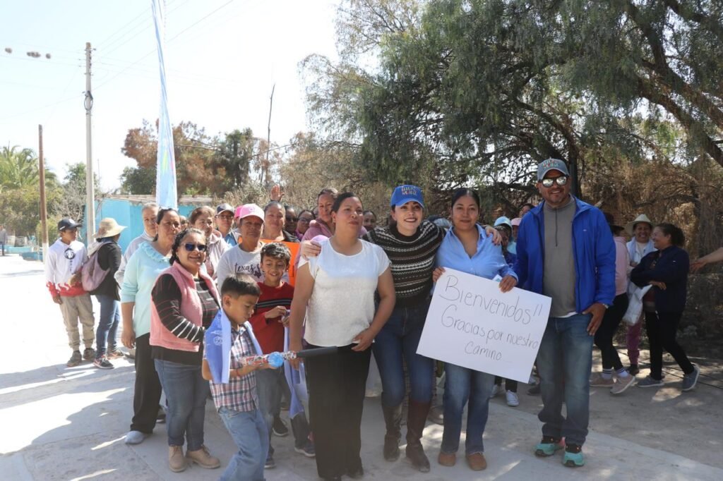 Michel Reyes Lucio, presidenta del Sistema DIF en representación del presidente municipal, Adrián Hernández Alejandri acudió a la comunidad La Esperanza, donde inauguró la pavimentación del camino con la presencia de habitantes de la zona.