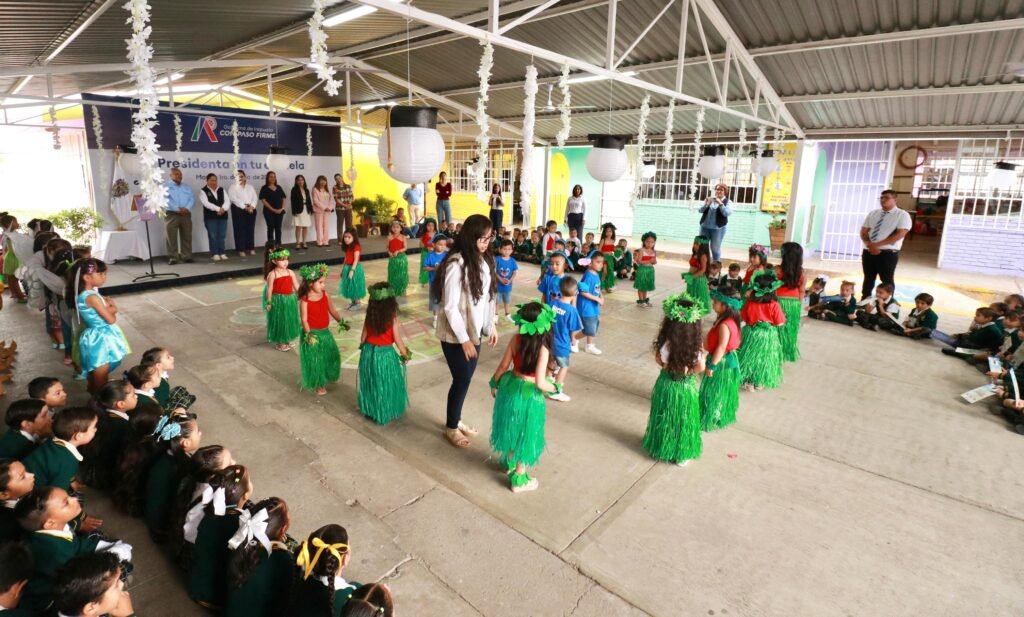 Ahí mismo, la directora del jardín de niños, Olga Villa Rojas, dio la bienvenida a las autoridades y destacó que, de la mano de docentes, madres y padres de familia, se ha fortalecido la educación de las y los menores; agradeció también la visita de las autoridades para ser testigos del crecimiento de las y los estudiantes.